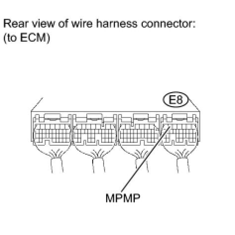 (b) Measure the voltage between MPMP terminal of the ECM connector and the body ground when the leak detection pump is turned ON and OFF using the Techstream.