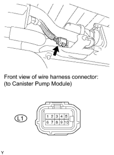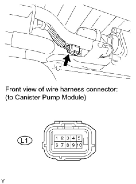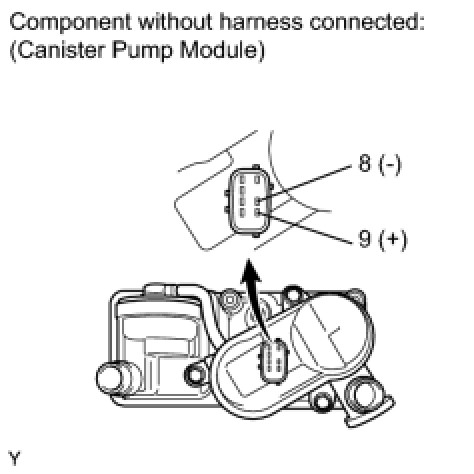 (c) Apply the battery voltage to terminals 9 and 8 of the canister pump module.