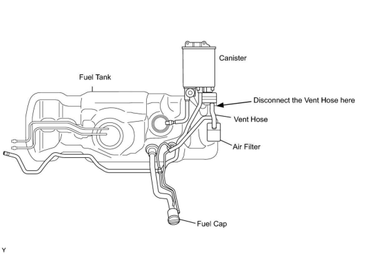 Disconnect the hose between the canister and the fuel tank from the canister. Block the canister side and conduct an inspection. In this way, the fuel tank can be excluded as an area suspected of causing fuel leaks.
