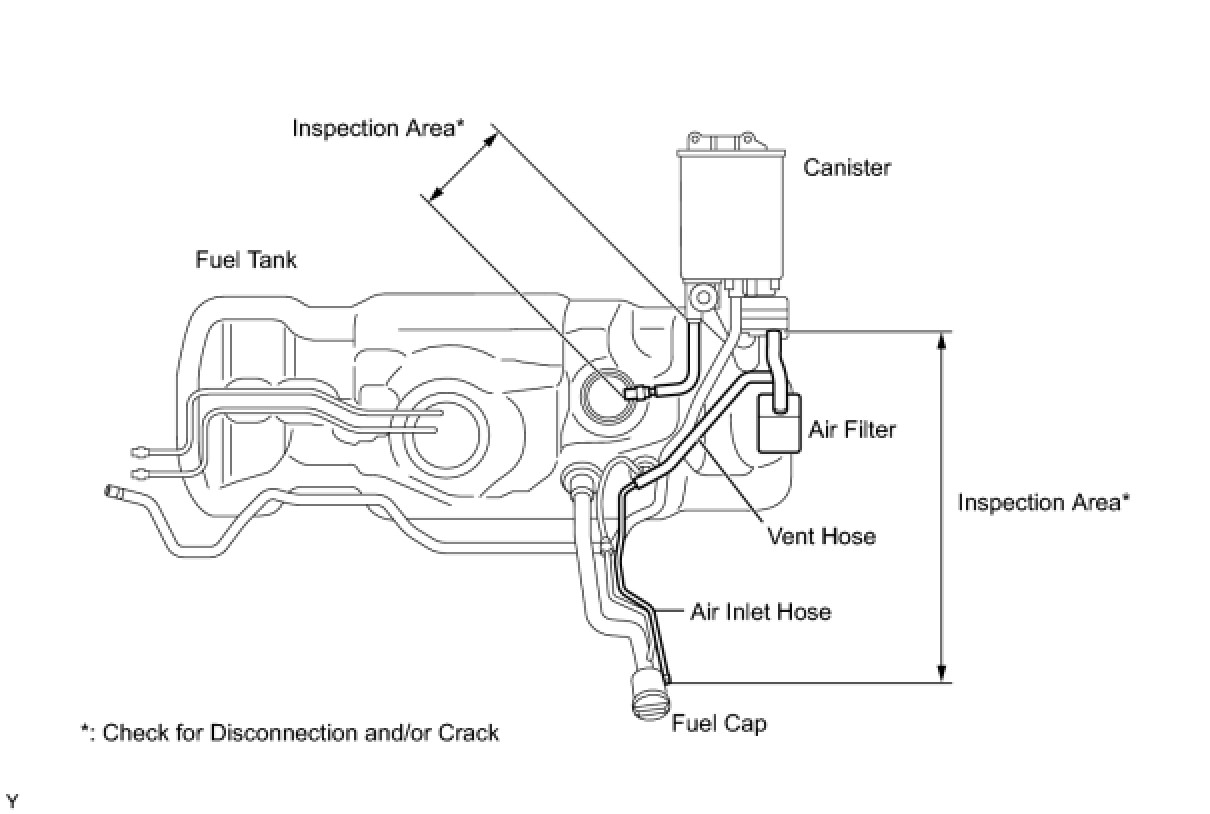 When replacing the canister, check the canister pump module interior and related pipes for water, fuel or other liquids. If liquids are present, check for disconnections and/or cracks in the following: 1) the pipe from the air inlet port to the canister pump module; 2) the canister filter; and 3) the fuel tank vent hose.