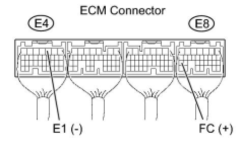 (b) Measure the voltage between the terminals of the ECM connectors.