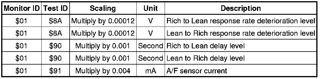 If you use a generic scan tool, multiply the test value by the scaling value listed below.