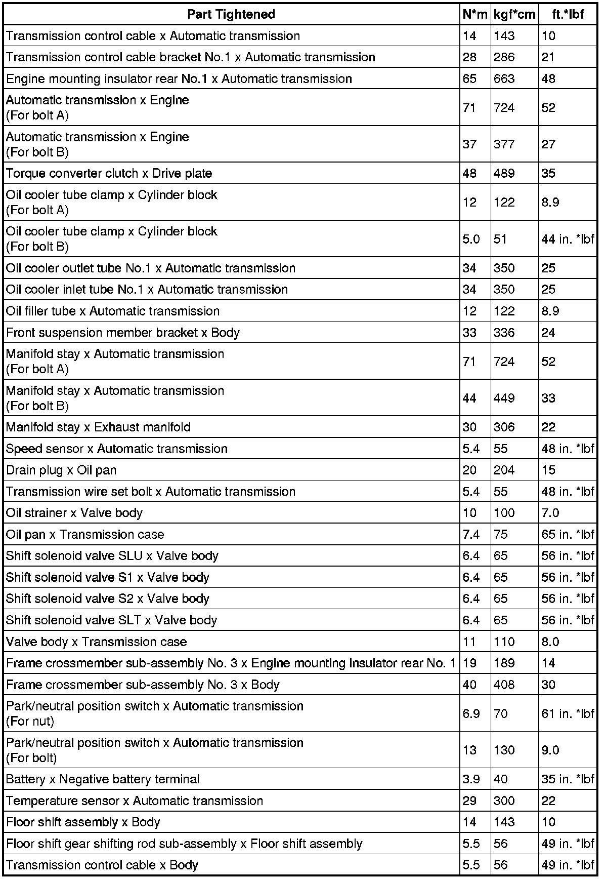 SERVICE SPECIFICATIONS: A340E AUTOMATIC TRANSMISSION: TORQUE SPECIFICATIONS