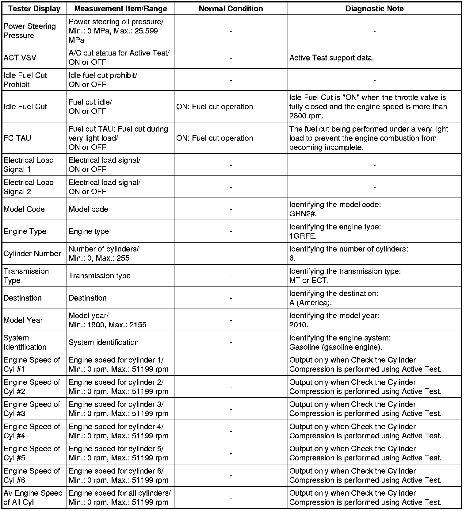 *2: When performing the Active Test item Check the Cylinder Compression and then cranking the engine, the ECM stops the fuel injection and ignition, and measures the engine speed for each cylinder.