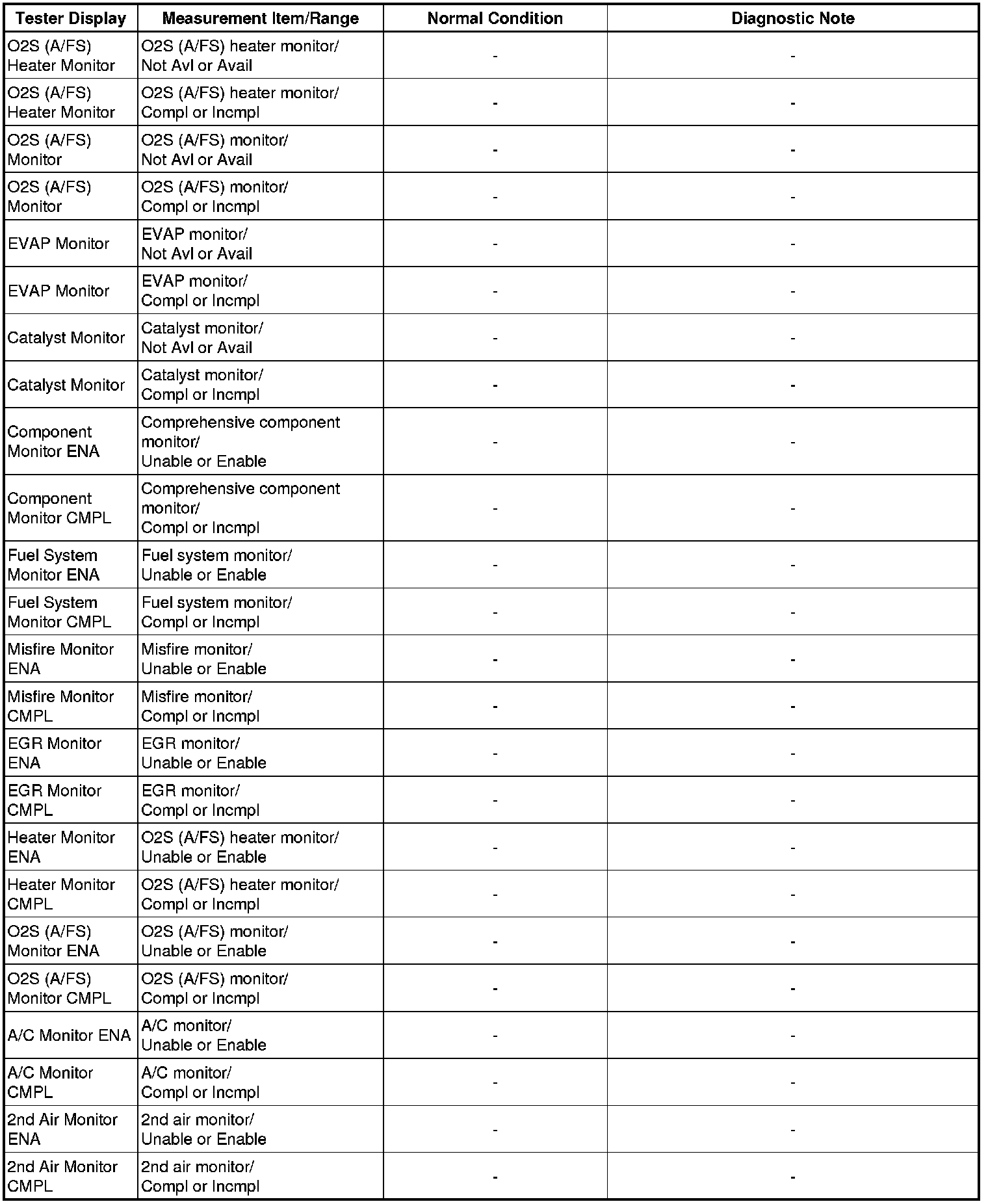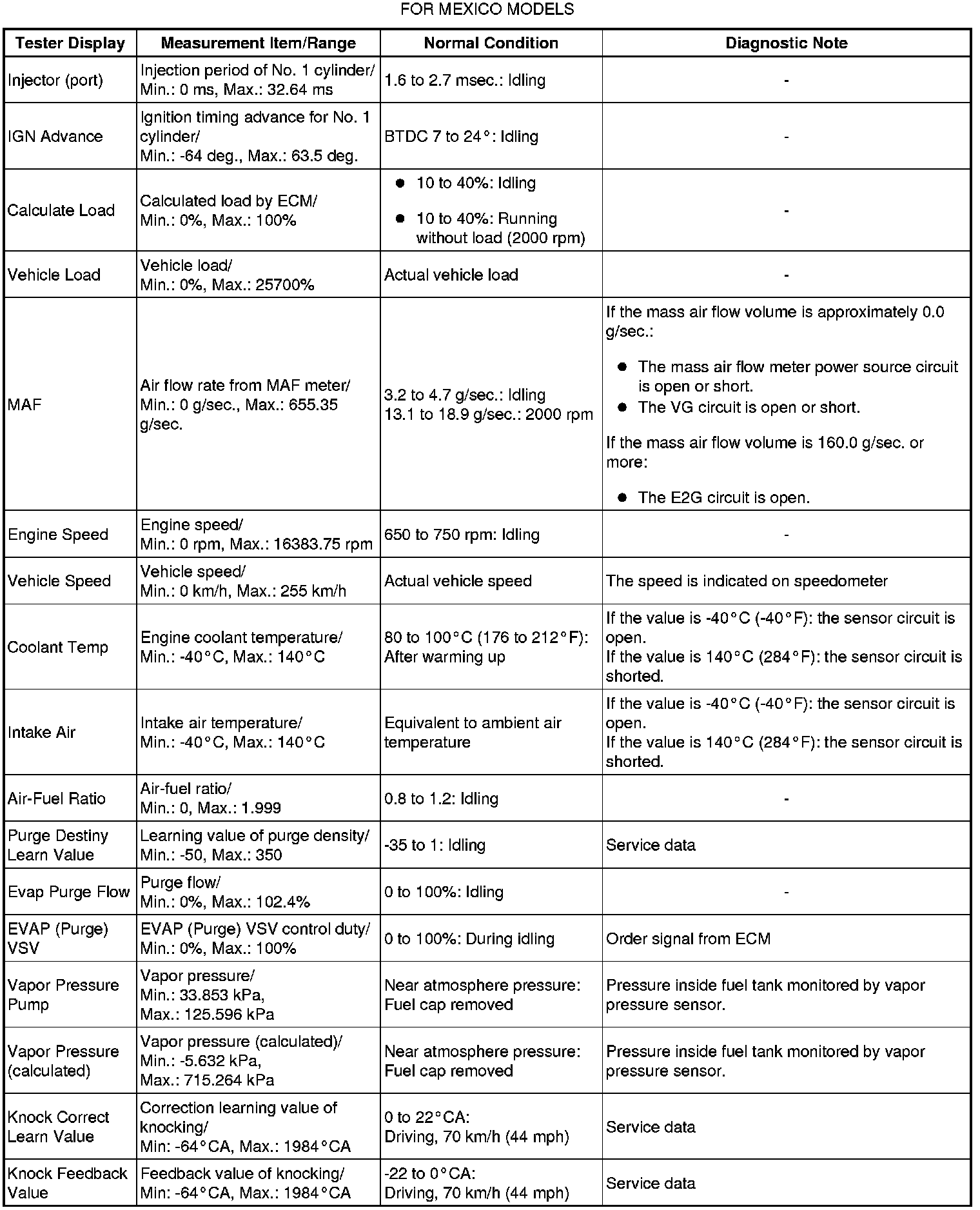 * Normal Condition: If no conditions are specifically stated for "idling", the shift lever is in N or P, the A/C switch is off and all accessory switches are off.