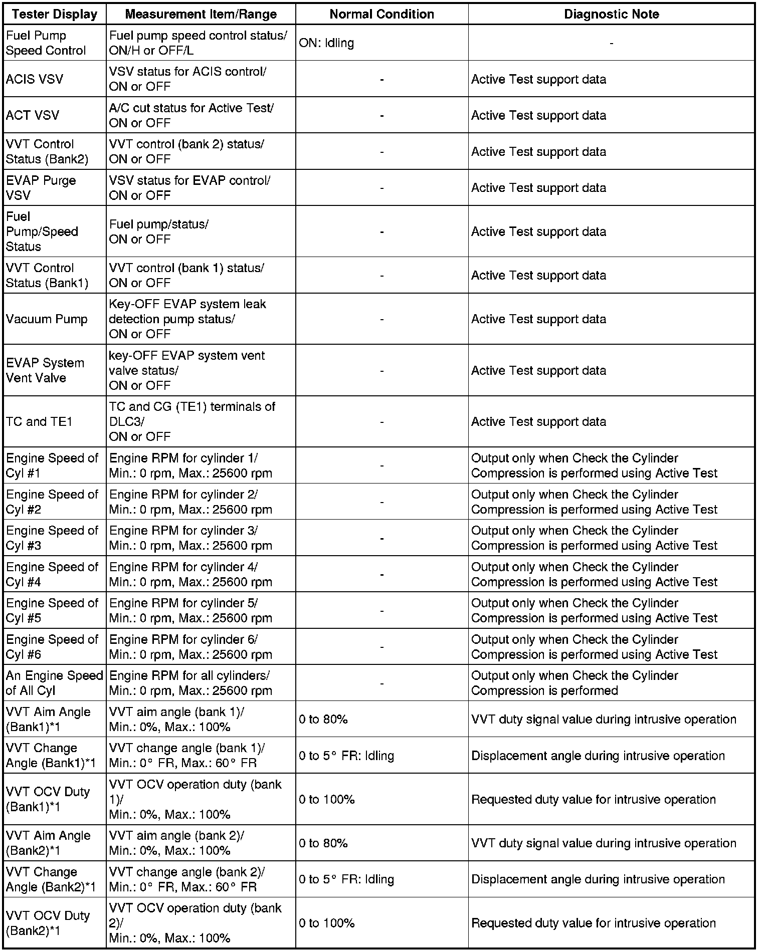 * *1: Data List values are only displayed when performing the following Active Tests: Control the VVT Linear (Bank 1) and Control the VVT Linear (Bank 2). For other Active Tests, the Data List value will be 0.
