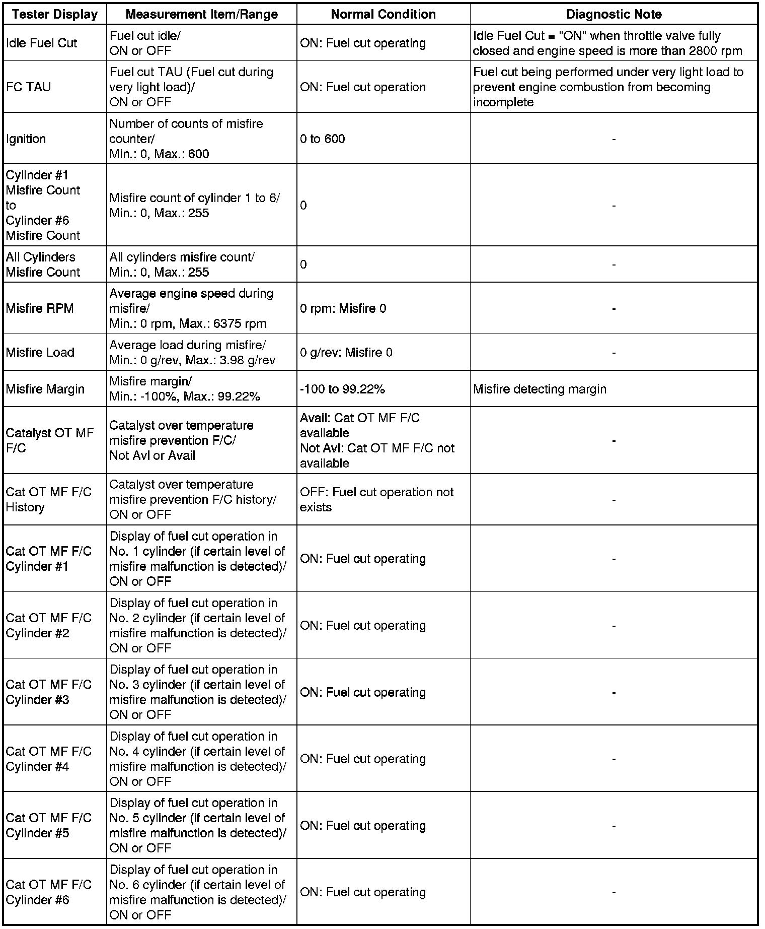 * Monitor the engine speed (Engine Speed of Cyl #1 to #6, Av Engine Speed of All Cyl) displayed on the Techstream.