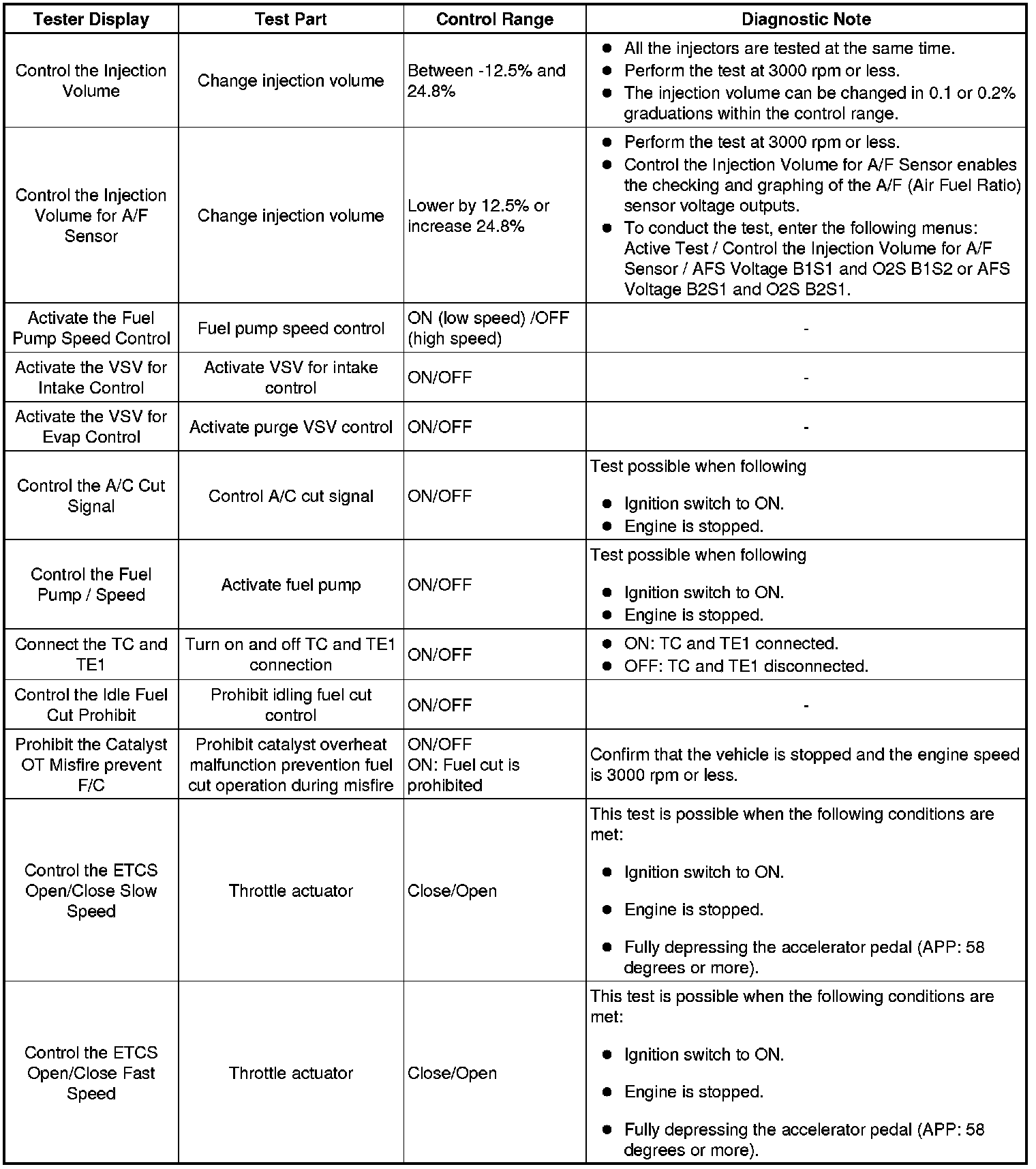 Using the Techstream to perform the Active Tests allows relays, VSVs, actuators and other items to be operated without removing any parts. This non-intrusive functional inspection can be very useful because intermittent operation may be discovered before parts or wiring is disturbed. Performing Active Tests early in troubleshooting is one way to save diagnostic time. Data List information can be displayed while performing Active Tests.