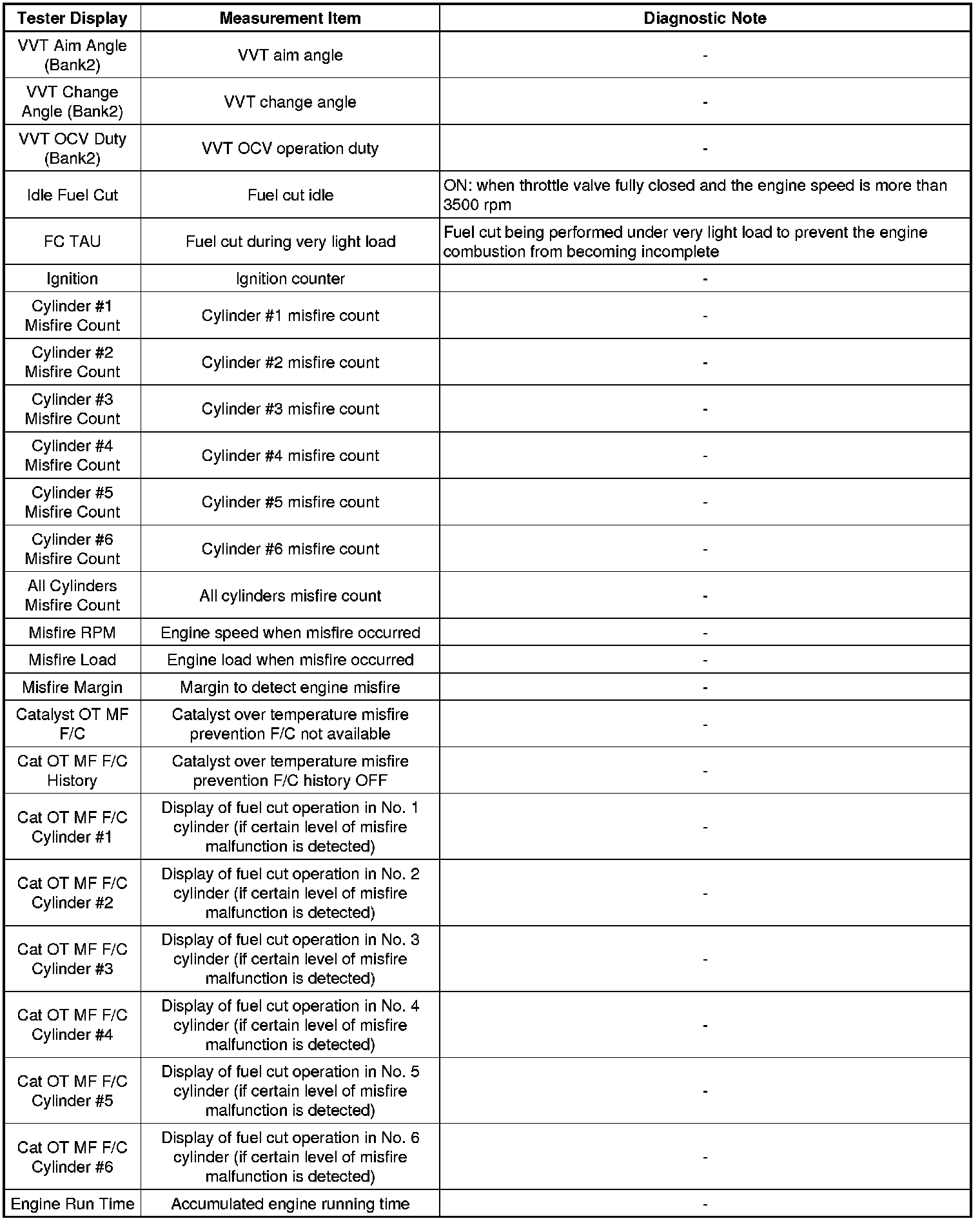 The ECM records engine conditions in the form of freeze frame data every 0.5 seconds. Using the Techstream five separate sets of freeze frame data, including the data values at the time when the DTC was set, can be checked.