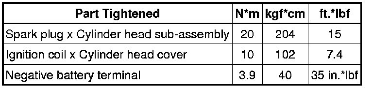 SERVICE SPECIFICATIONS: 1GR-FE IGNITION: TORQUE SPECIFICATIONS