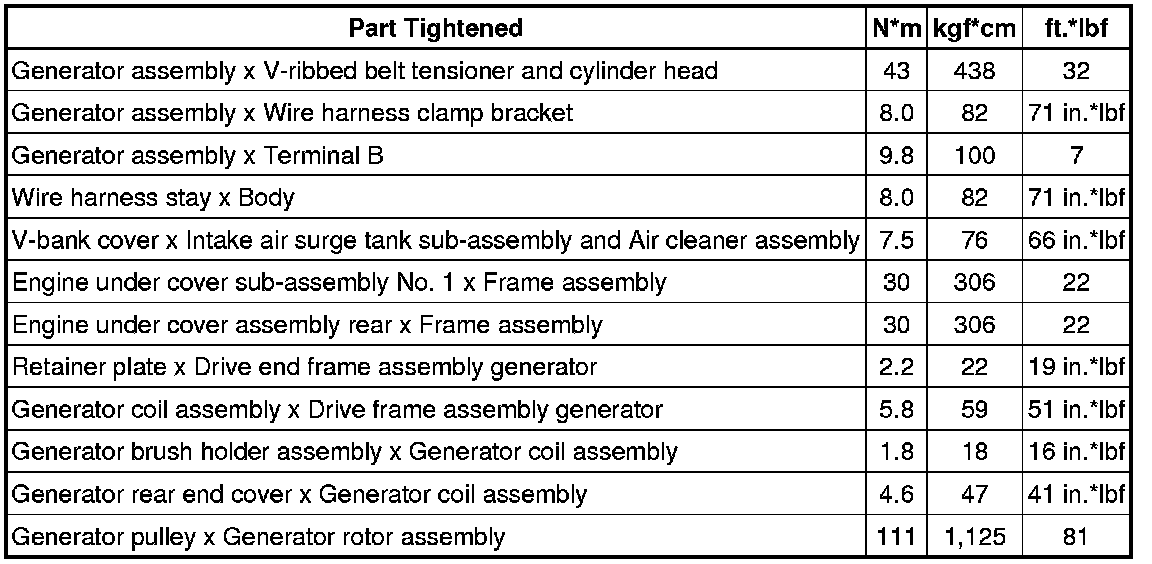 SERVICE SPECIFICATIONS: 1GR-FE CHARGING: TORQUE SPECIFICATIONS