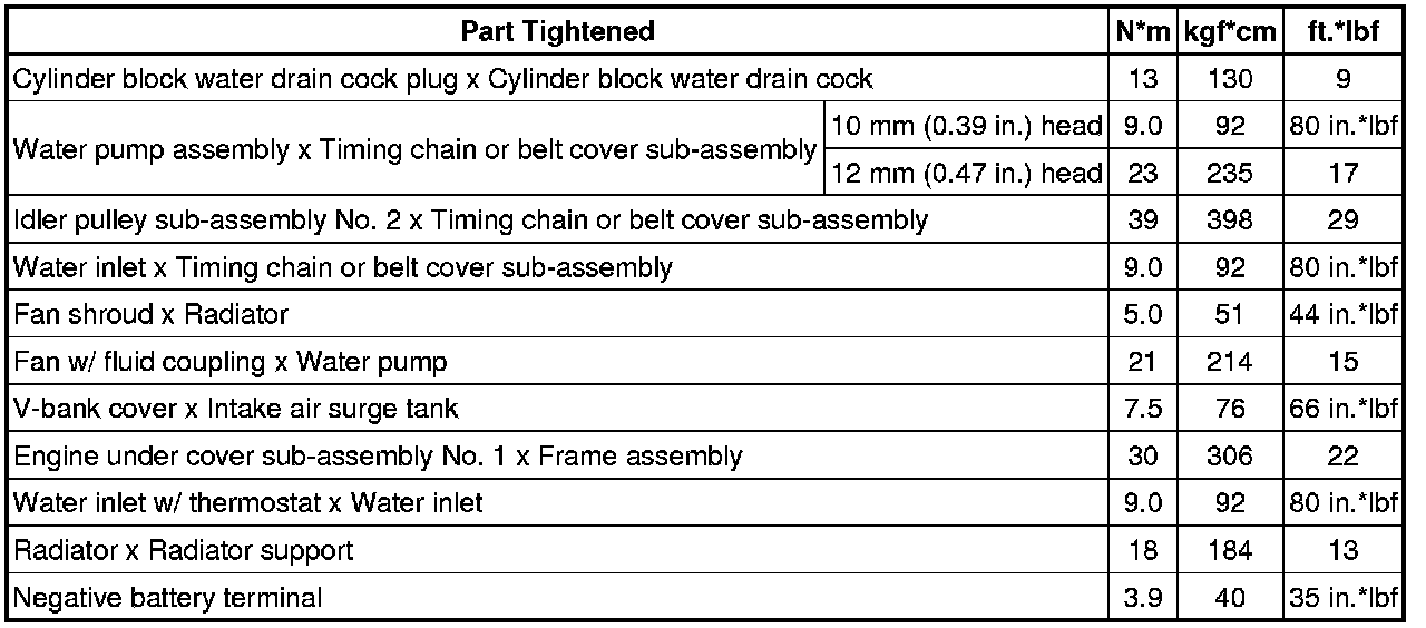 SERVICE SPECIFICATIONS: 1GR-FE COOLING: TORQUE SPECIFICATIONS