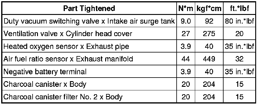 SERVICE SPECIFICATIONS: 1GR-FE EMISSION CONTROL: TORQUE SPECIFICATIONS