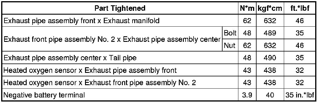 SERVICE SPECIFICATIONS: 1GR-FE EXHAUST: TORQUE SPECIFICATIONS