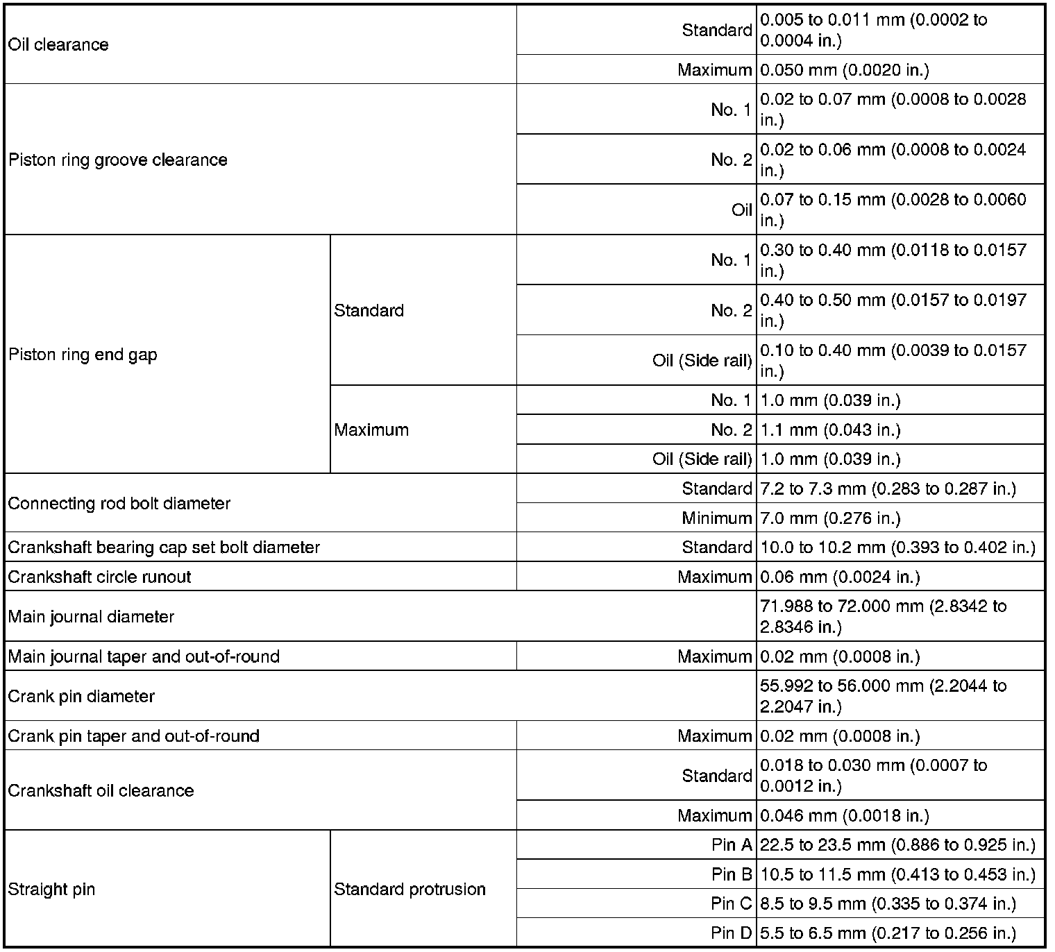 SERVICE SPECIFICATIONS: 1GR-FE ENGINE MECHANICAL: SERVICE DATA