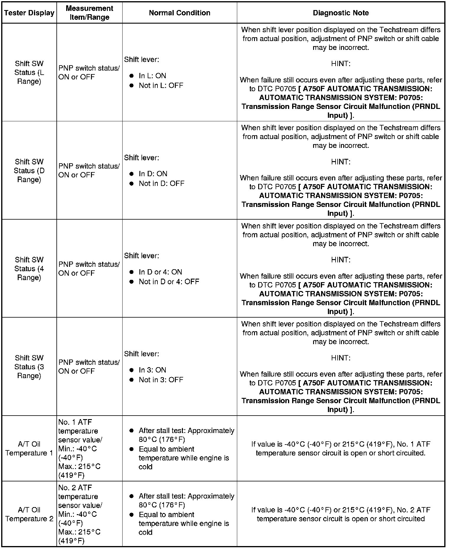 A750F AUTOMATIC TRANSMISSION: AUTOMATIC TRANSMISSION SYSTEM: DATA LIST / ACTIVE TEST