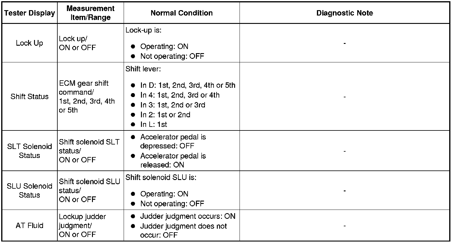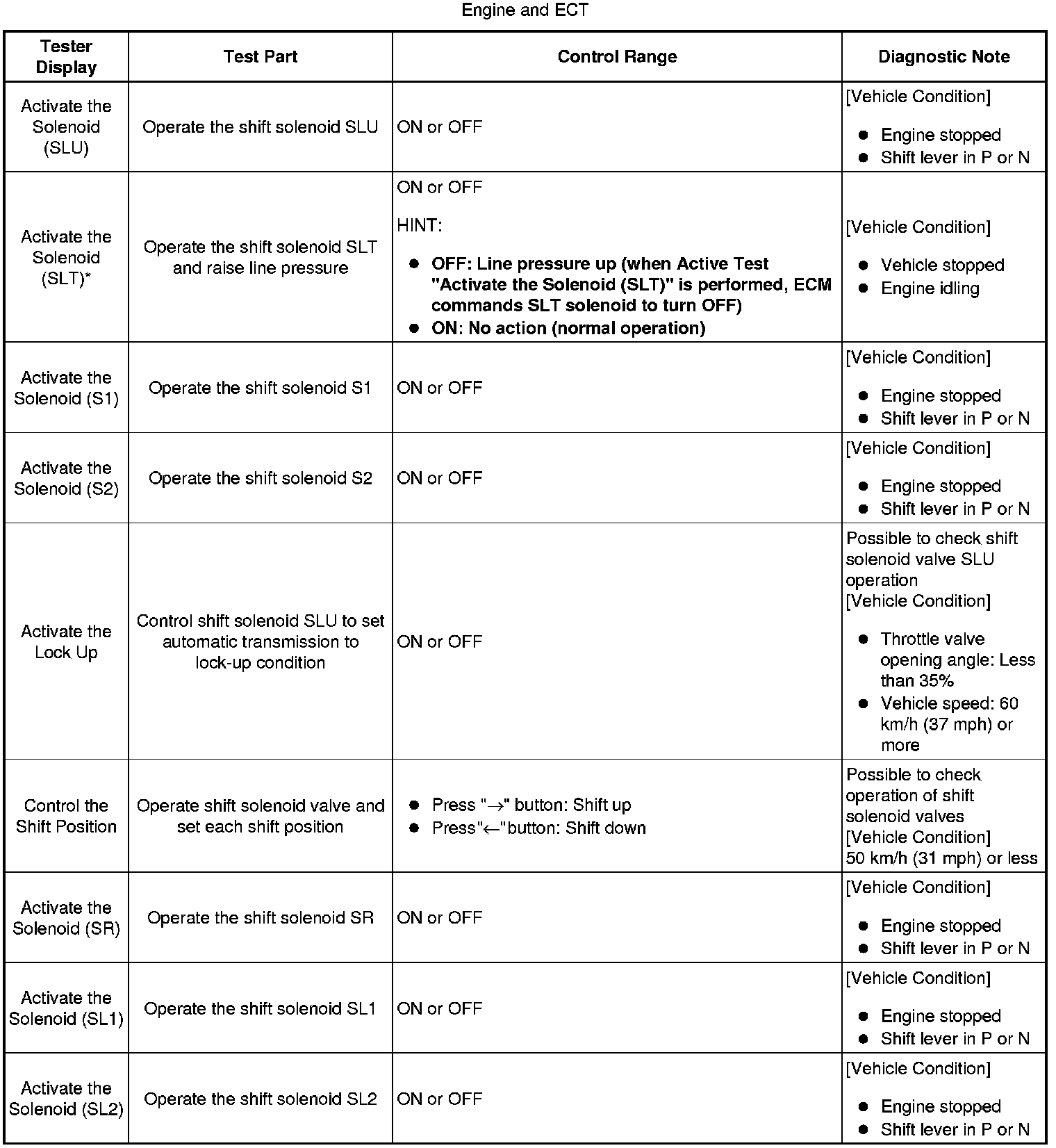 * *: Activate the Solenoid (SLT) in the Active Test is performed to check the line pressure changes by connecting SST to the automatic transmission, which is used in the Hydraulic Test Hydraulic Test as well.