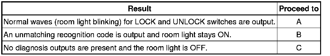 (a) Inspect the diagnosis outputs when the door control transmitter switch is held down. The diagnosis outputs can be checked with the outputs of the room light.