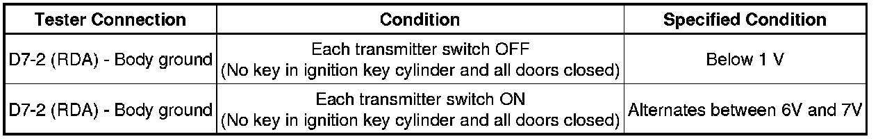(a) Prepare a new or correctly functioning door control transmitter switch for the same vehicle model. Press and hold a switch on the transmitter and check that an unmatching recognition code is output.