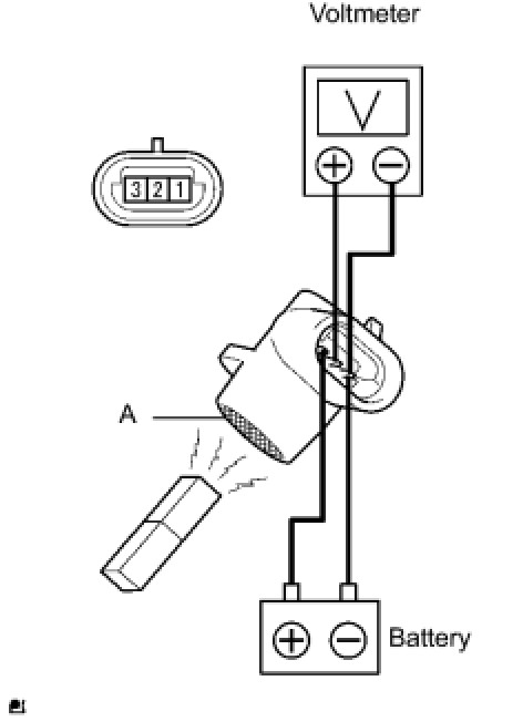 (1) Connect the positive (+) lead from the battery to terminal 3 (SSR-) and the negative (-) lead to terminal 1 (MG+), and measure the voltage between terminals 1 (MG+) and 2 (SSR+).