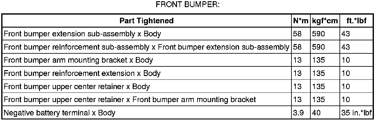 SERVICE SPECIFICATIONS: EXTERIOR: TORQUE SPECIFICATIONS