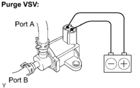 (b) Apply battery voltage to the terminals of the purge VSV.