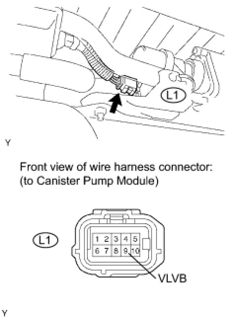 (c) Apply the battery voltage to terminals 9 and 8 of the canister pump module.