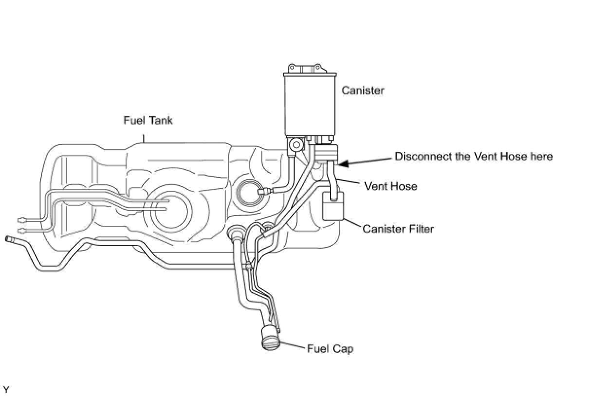 Disconnect the hose between the canister and the fuel tank from the canister. Block the canister side and conduct an inspection. In this way, the fuel tank can be excluded as an area suspected of causing fuel leaks.