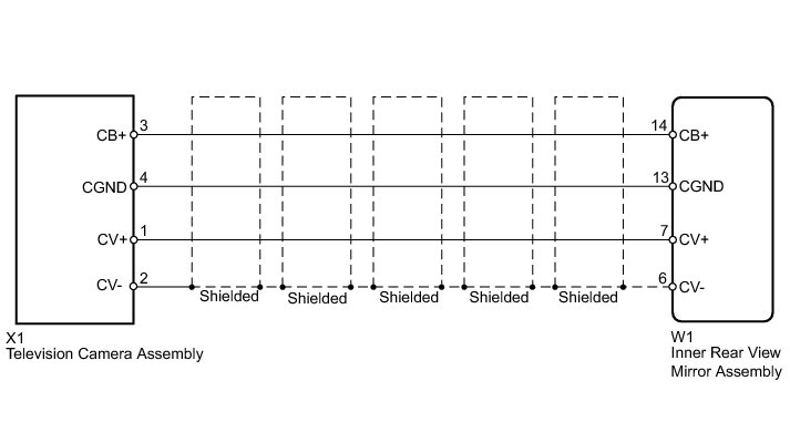 - Display Signal Circuit between Inner Rear View Mirror Assembly and Television Camera Assembly