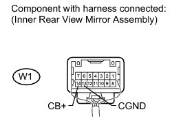 (a) Disconnect the W1 inner rear view mirror assembly connector.