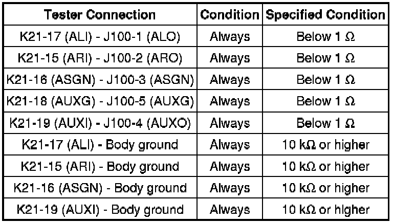 If there is an open or short in the circuit, sound cannot be heard from the speakers even if there is no malfunction in the navigation receiver assembly or speakers.