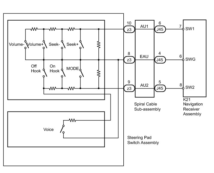 NAVIGATION: NAVIGATION SYSTEM (w/ USB Audio System): Steering Pad Switch Circuit