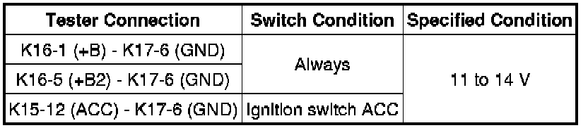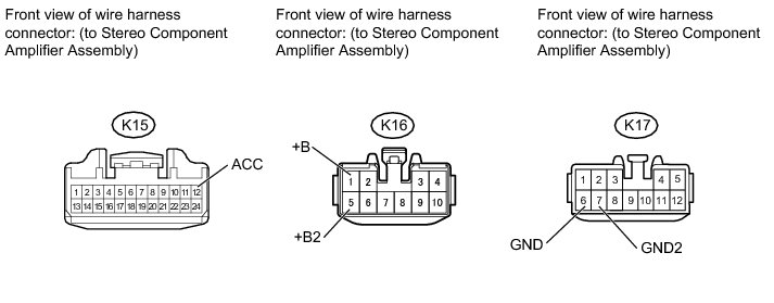 (a) Disconnect the K15, K16 and K17 stereo component amplifier assembly connectors.