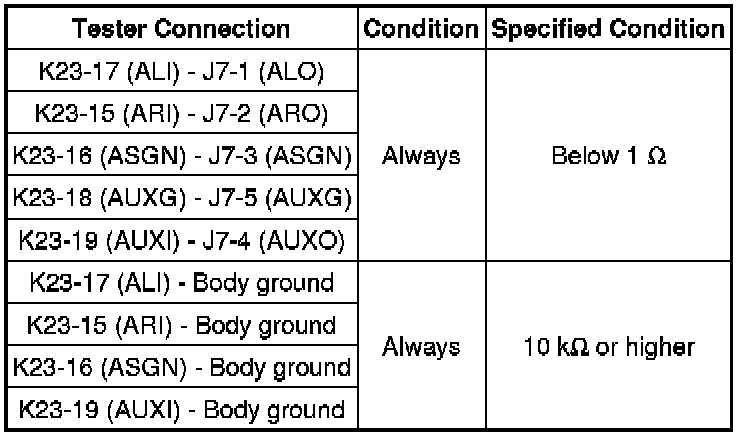 If there is an open or short in the circuit, sound cannot be heard from the speakers even if there is no malfunction in the navigation receiver assembly or speakers.