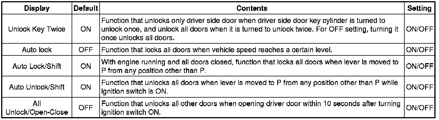 DOOR LOCK: POWER DOOR LOCK CONTROL SYSTEM: CUSTOMIZE PARAMETERS