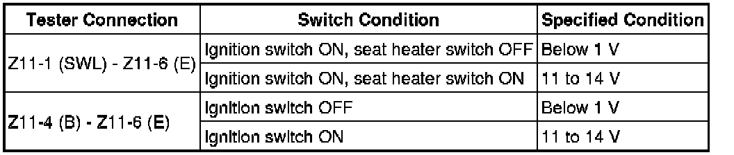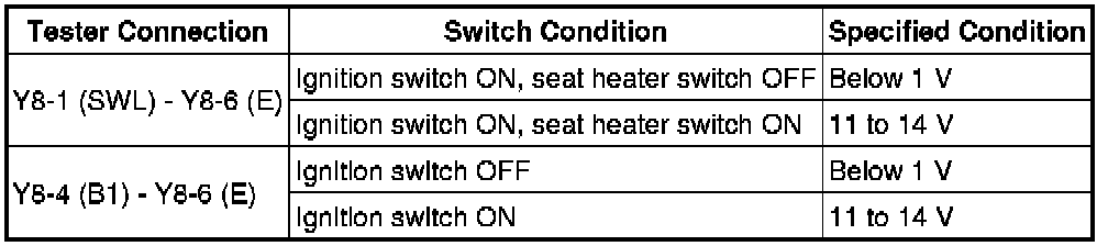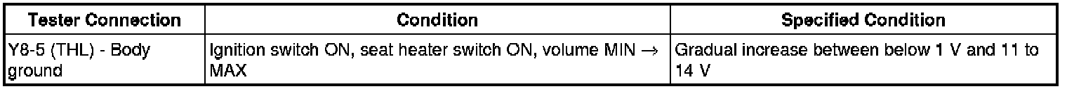 (h) If the result is not as specified, the seat heater control may have a malfunction.