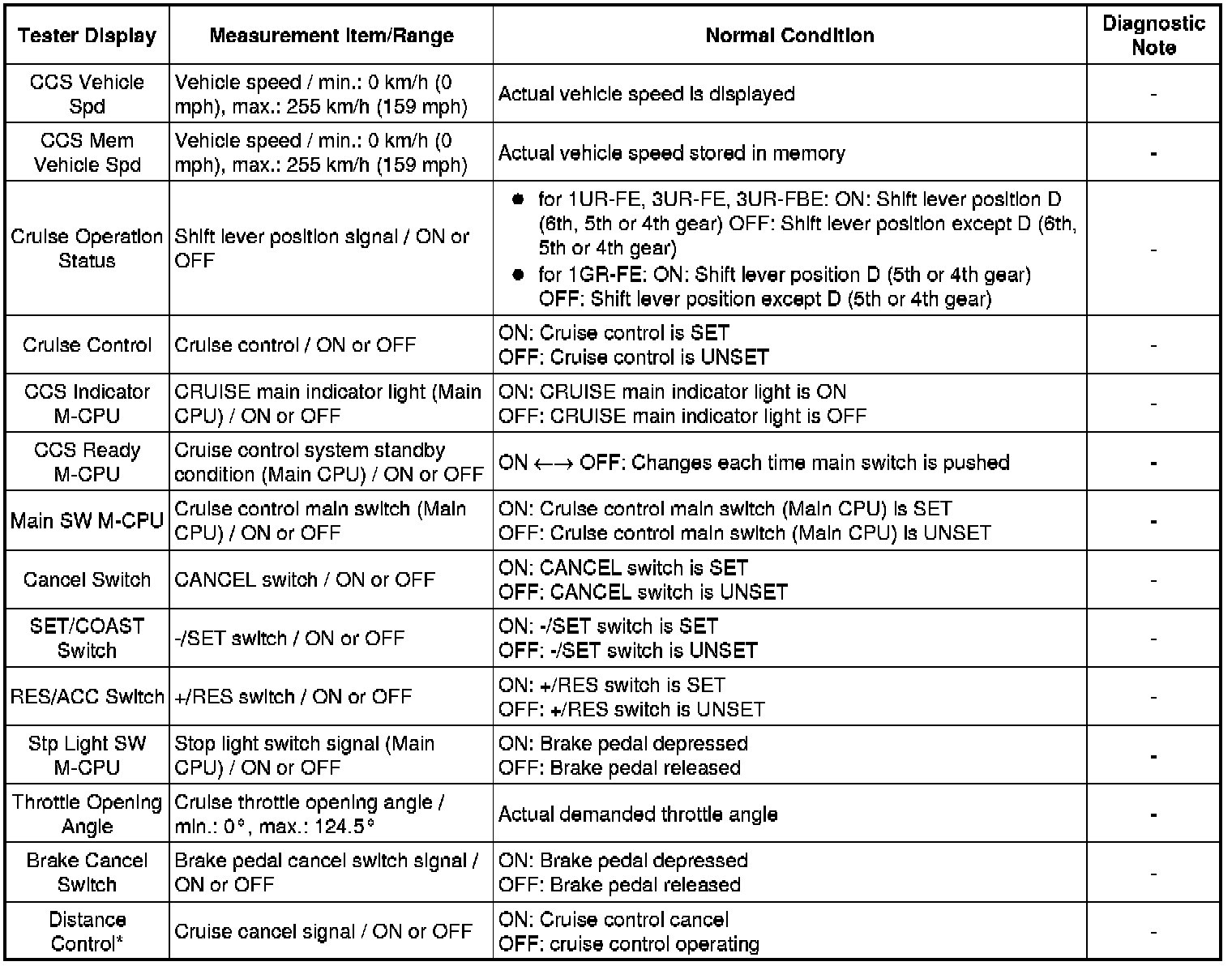 CRUISE CONTROL: CRUISE CONTROL SYSTEM: DATA LIST / ACTIVE TEST