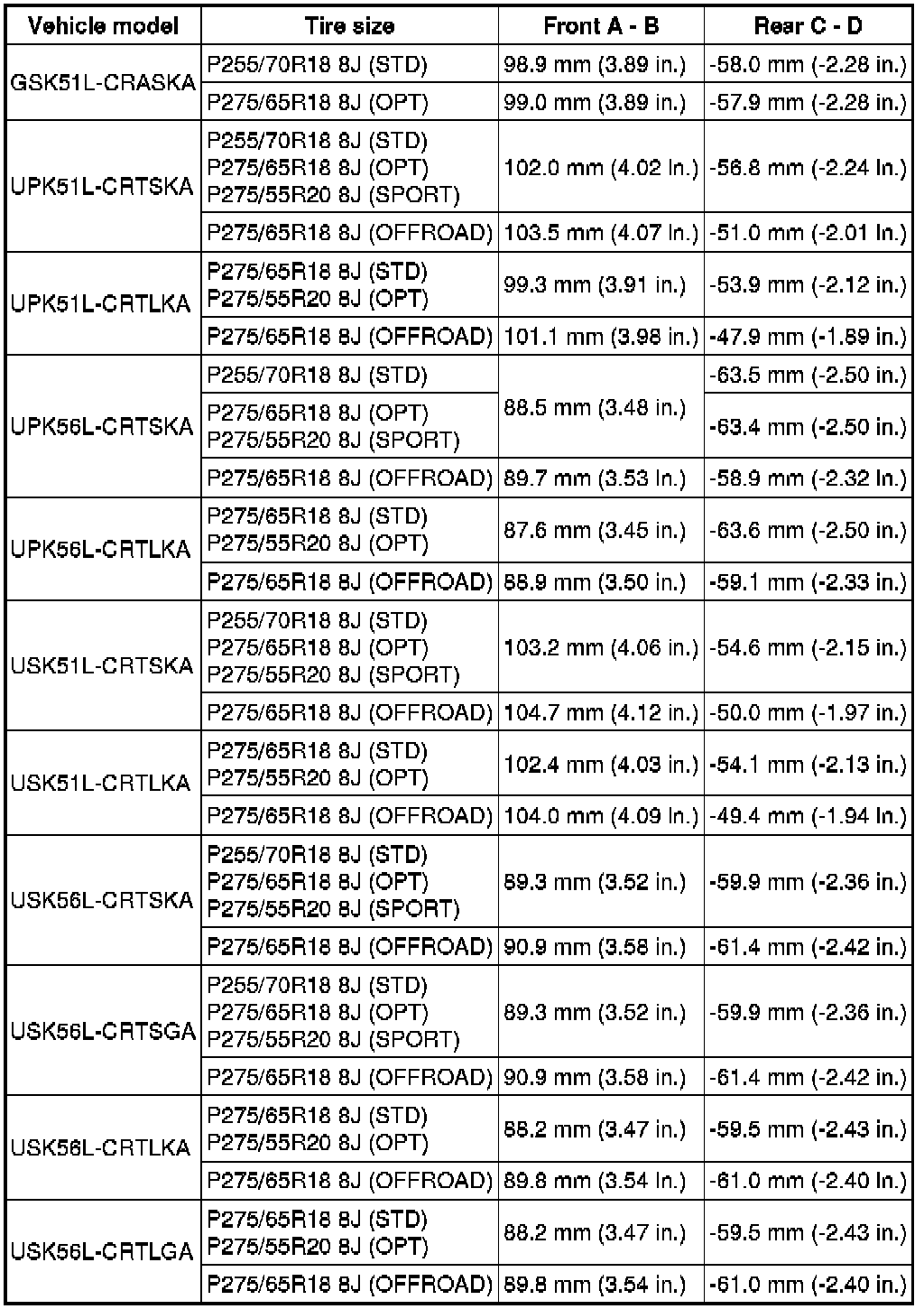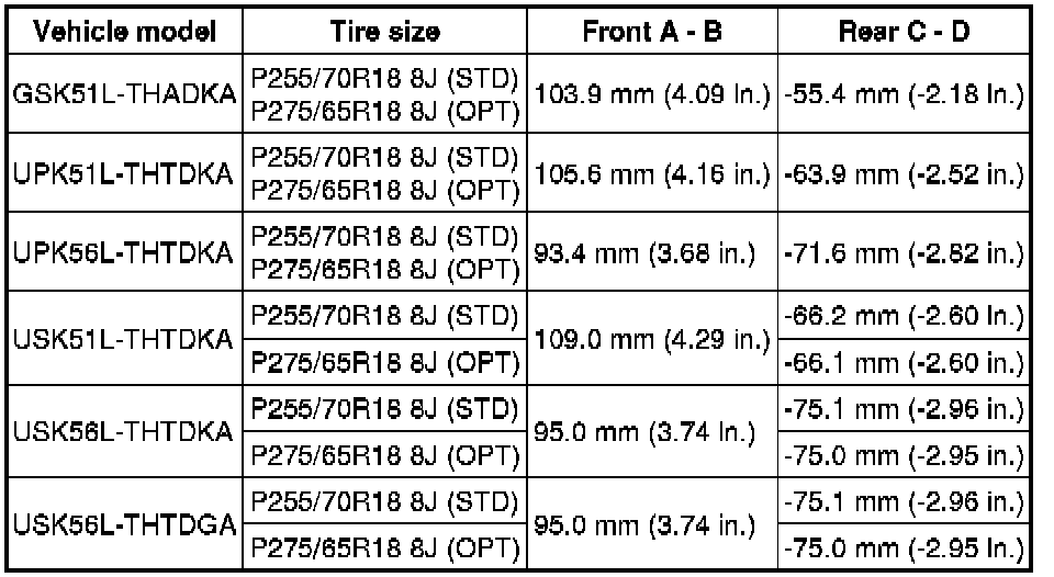 SERVICE SPECIFICATIONS: SUSPENSION: SERVICE DATA