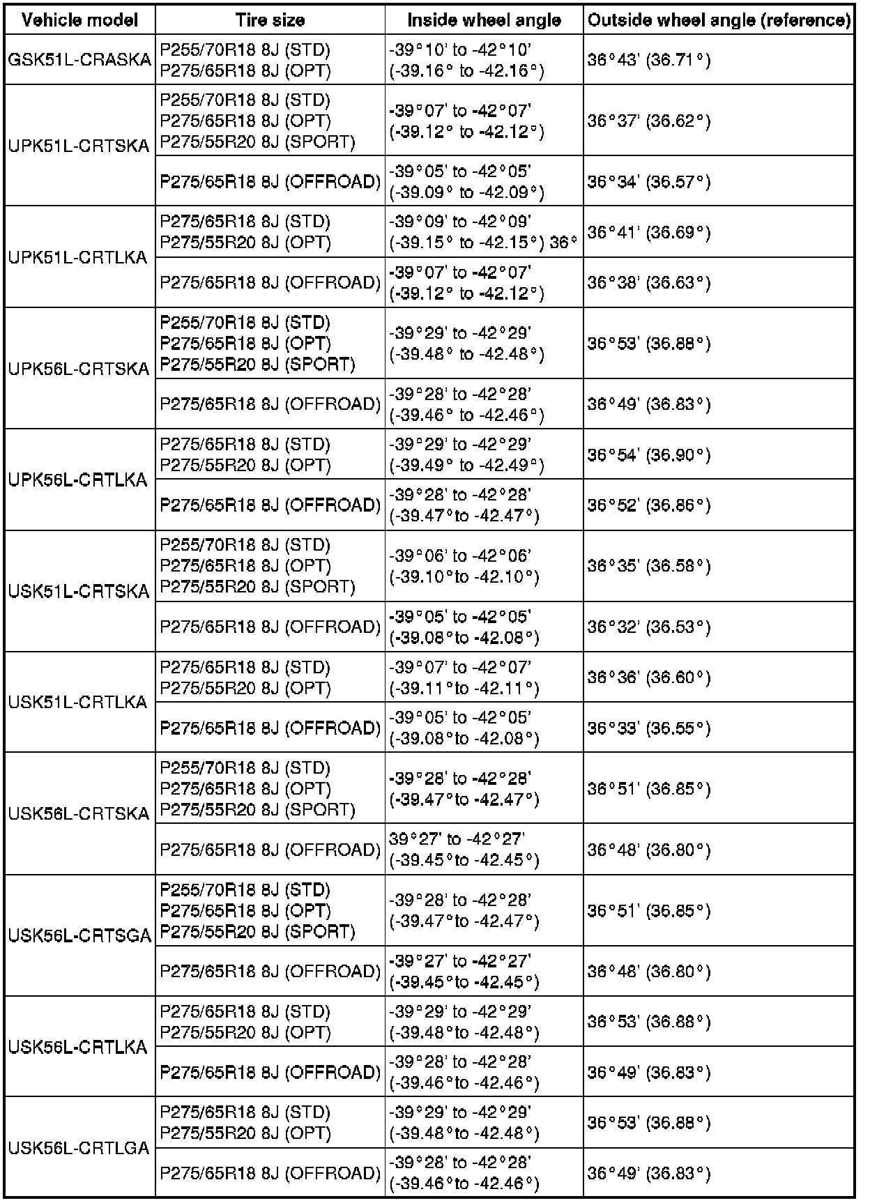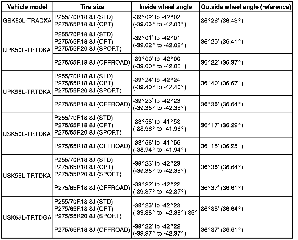 Standard Wheel Angle