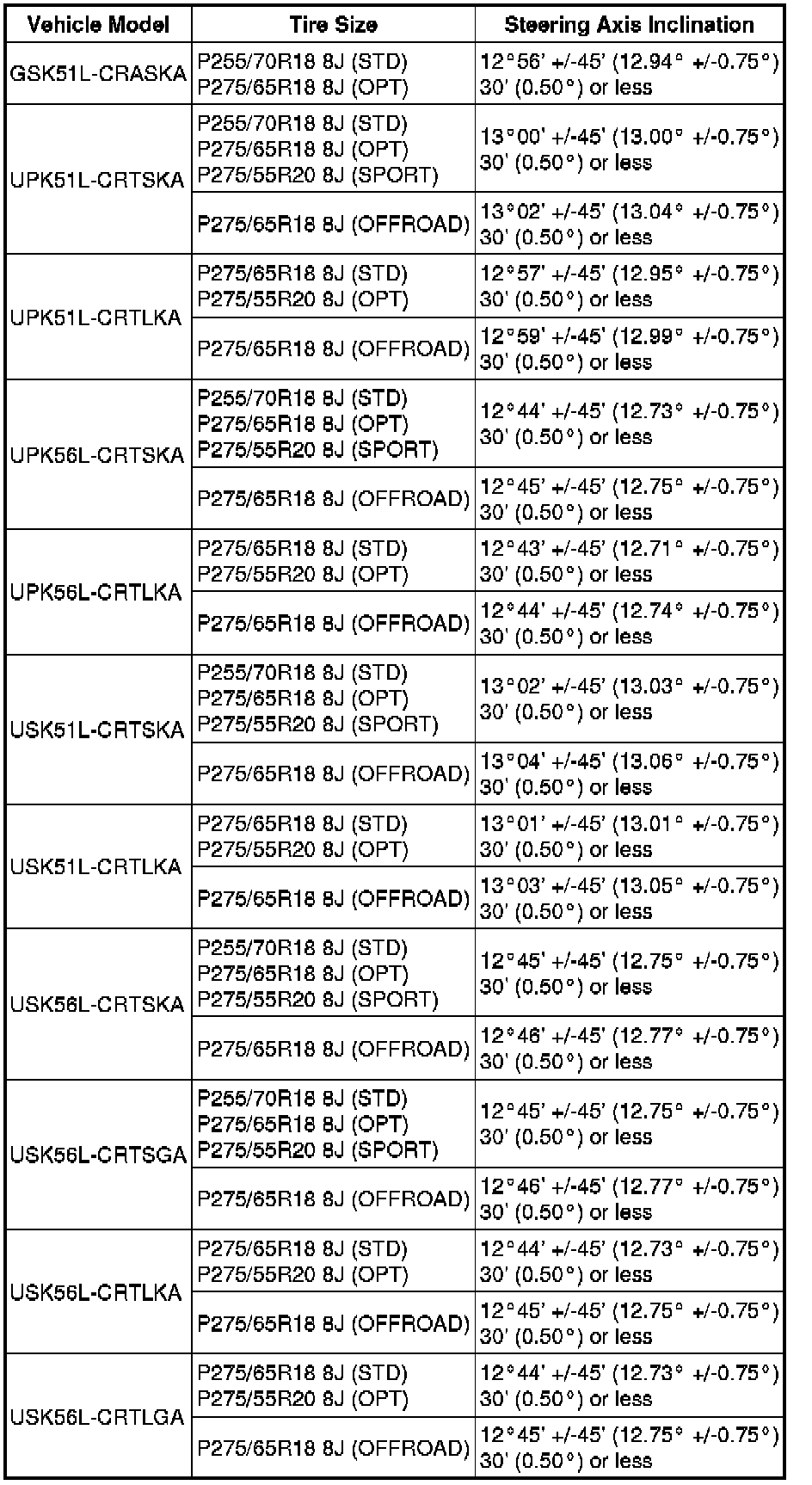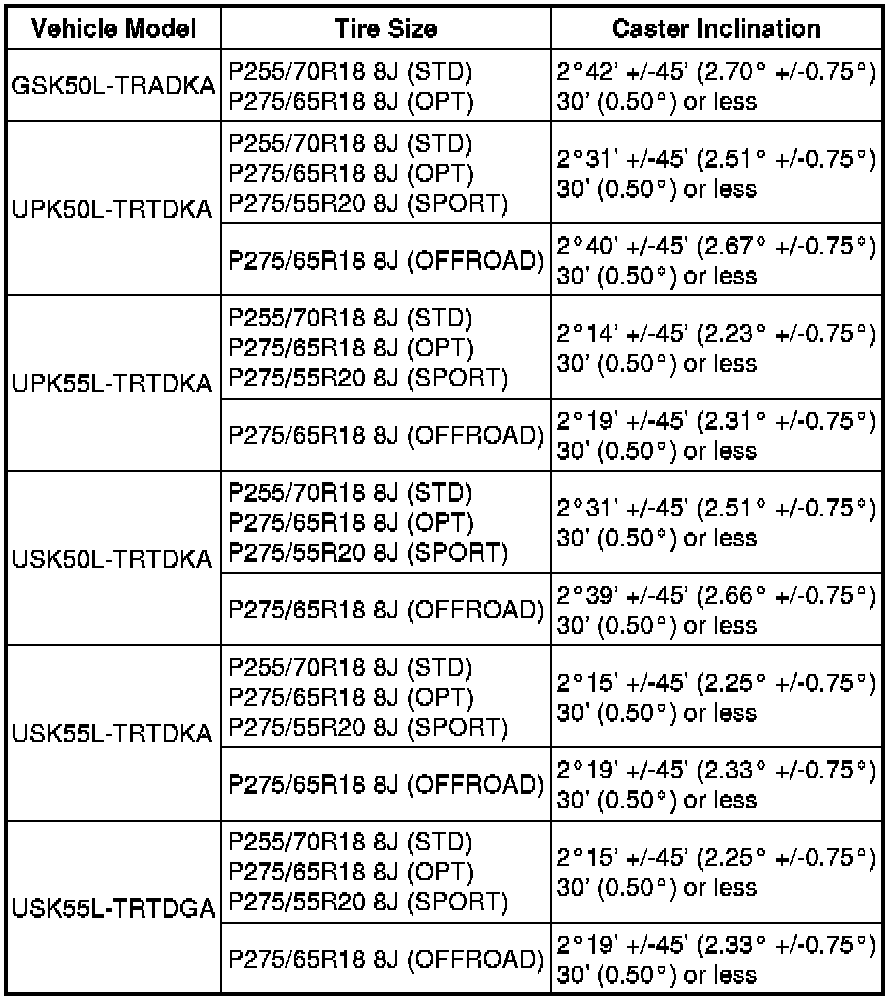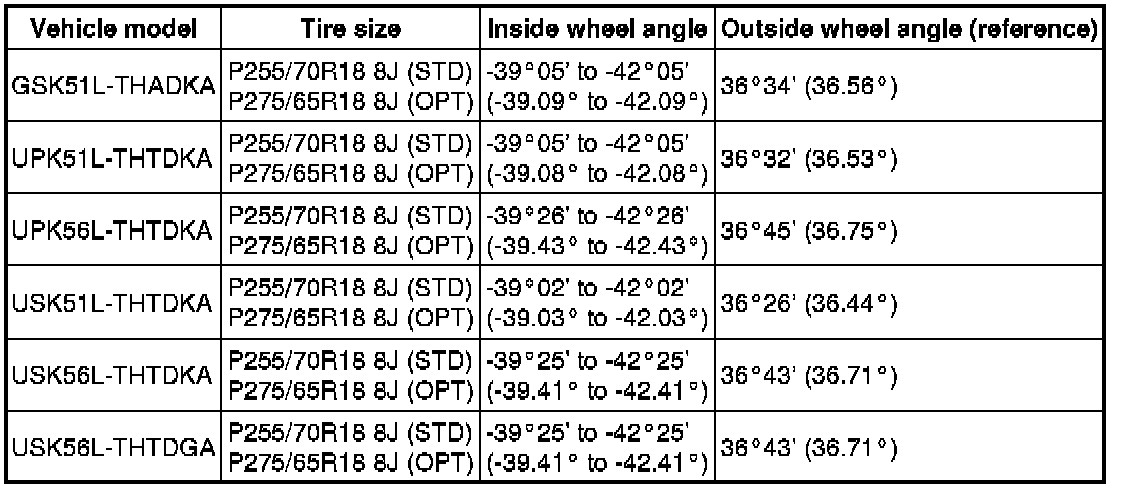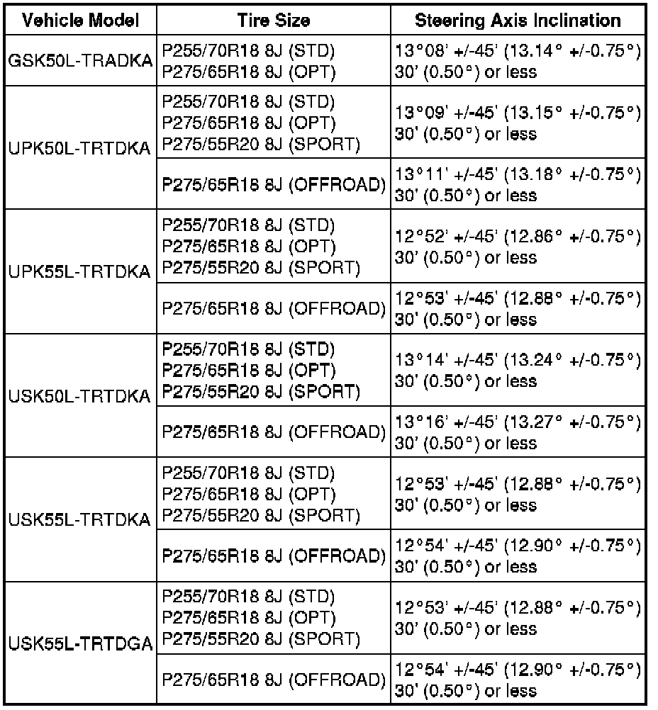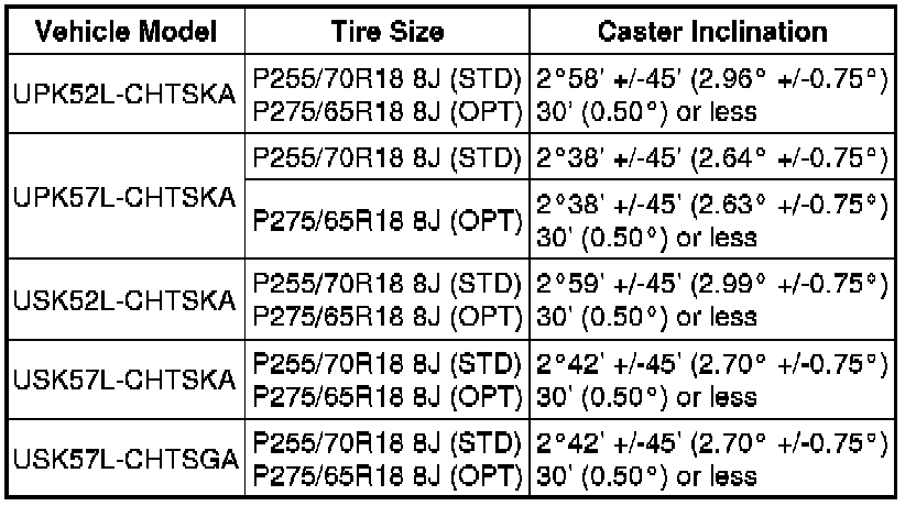 Standard Steering Angle Inclination