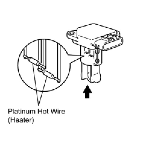 (a) Perform a visual check for any foreign matter on the platinum hot wire (heater) of the mass air flow meter shown in the illustration.