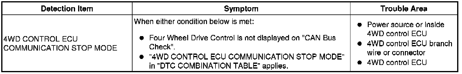 CAN COMMUNICATION: CAN COMMUNICATION SYSTEM: 4WD Control ECU Communication Stop Mode