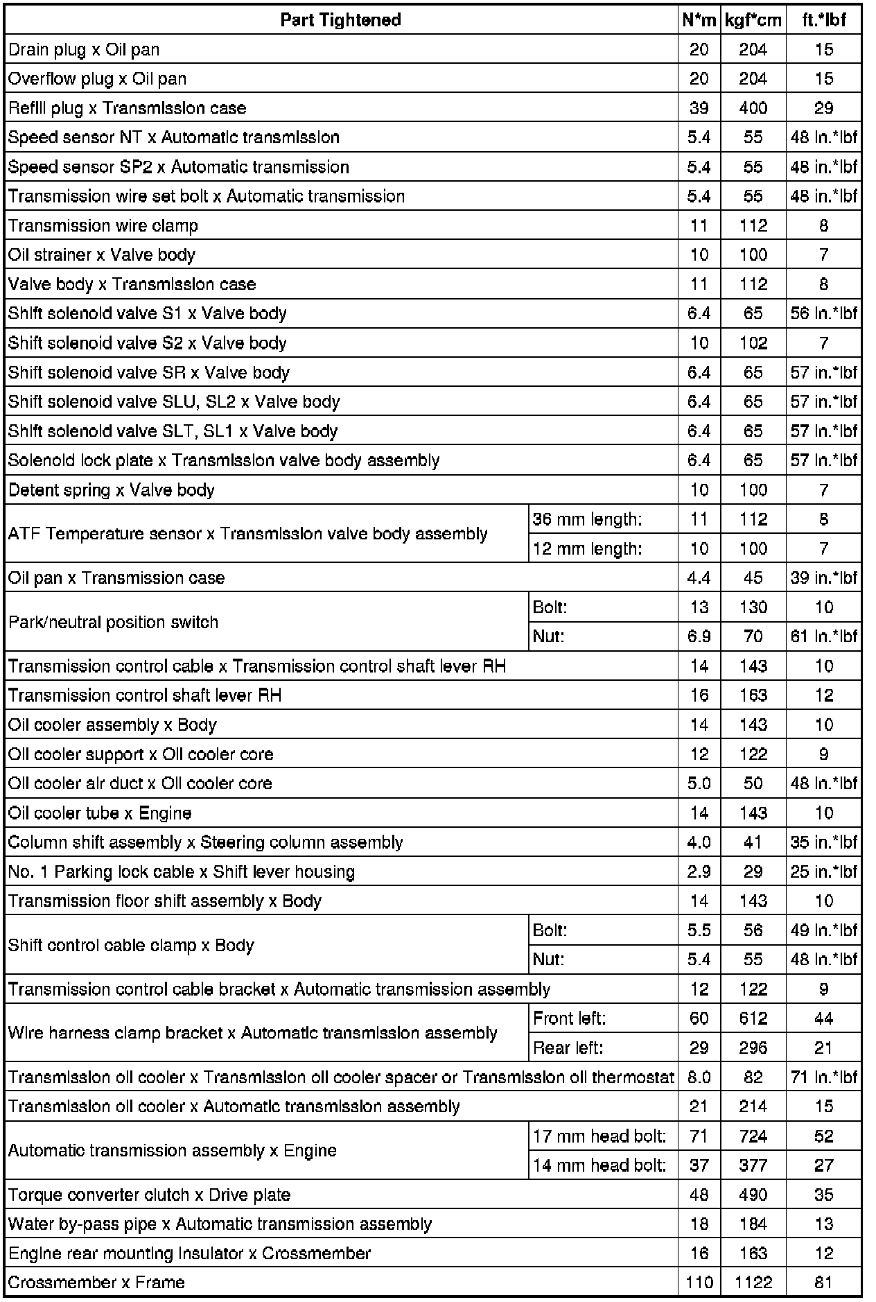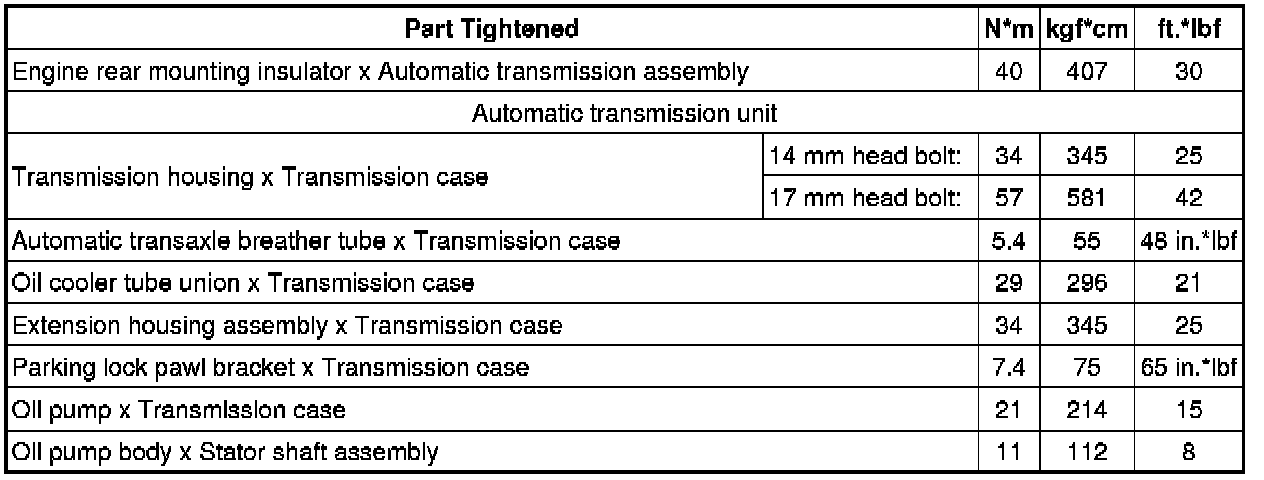SERVICE SPECIFICATIONS: A750E AUTOMATIC TRANSMISSION: TORQUE SPECIFICATIONS