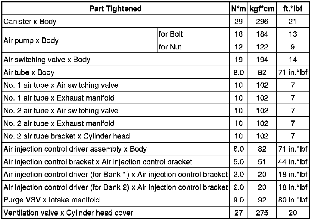 SERVICE SPECIFICATIONS: 1GR-FE EMISSION CONTROL: TORQUE SPECIFICATIONS