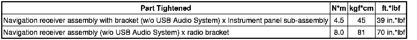 SERVICE SPECIFICATIONS: NAVIGATION: TORQUE SPECIFICATIONS