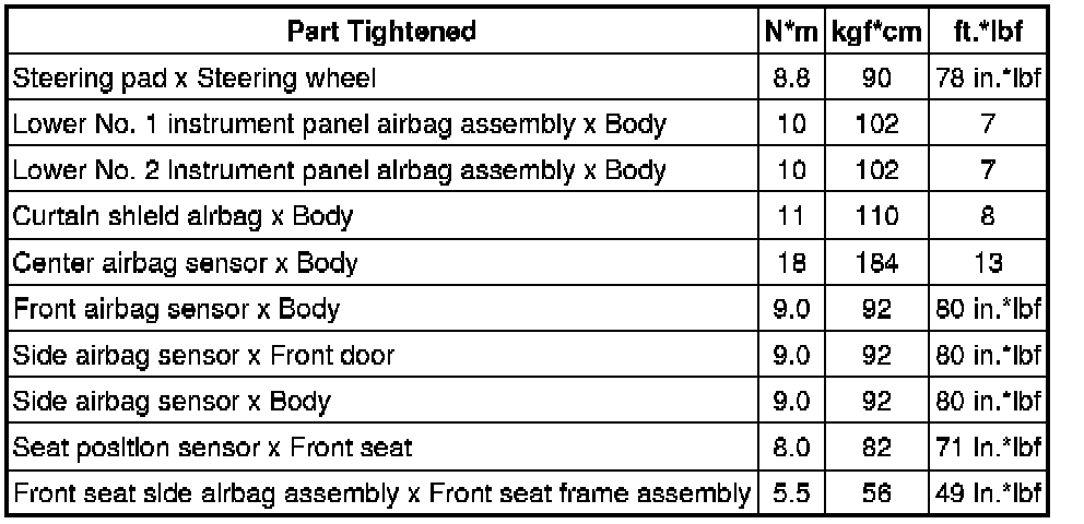 SERVICE SPECIFICATIONS: SUPPLEMENTAL RESTRAINT SYSTEM: TORQUE SPECIFICATIONS