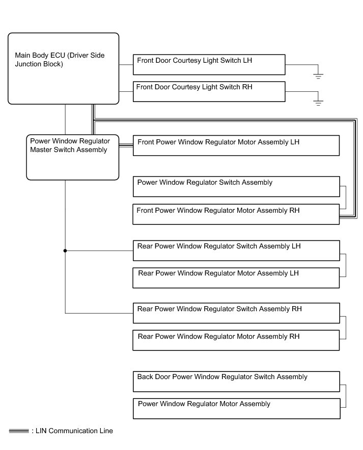 * The power window control system (for back window glass) controls the power window UP/DOWN function using the power window regulator motor.