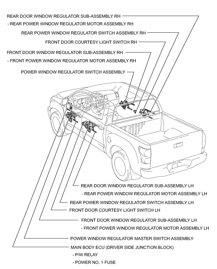 WINDSHIELD / WINDOWGLASS: POWER WINDOW CONTROL SYSTEM (w/ Jam Protection Function): PARTS LOCATION