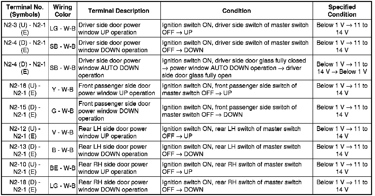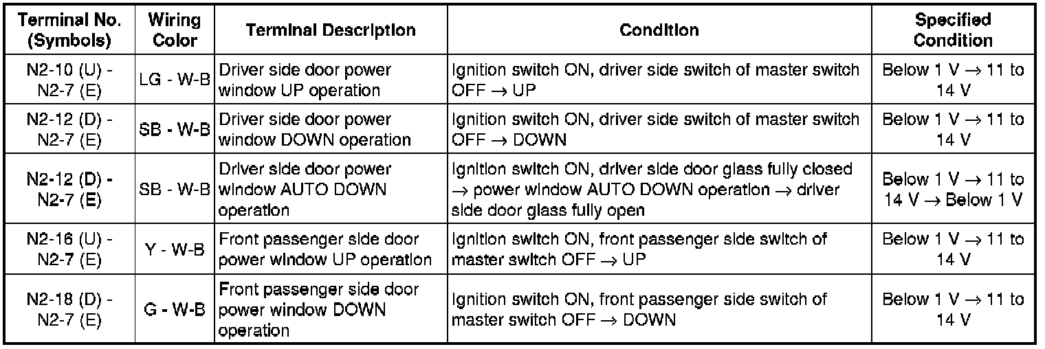 WINDSHIELD / WINDOWGLASS: POWER WINDOW CONTROL SYSTEM (w/o Jam Protection Function): TERMINALS OF ECU