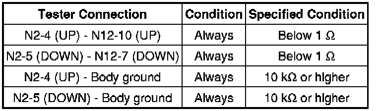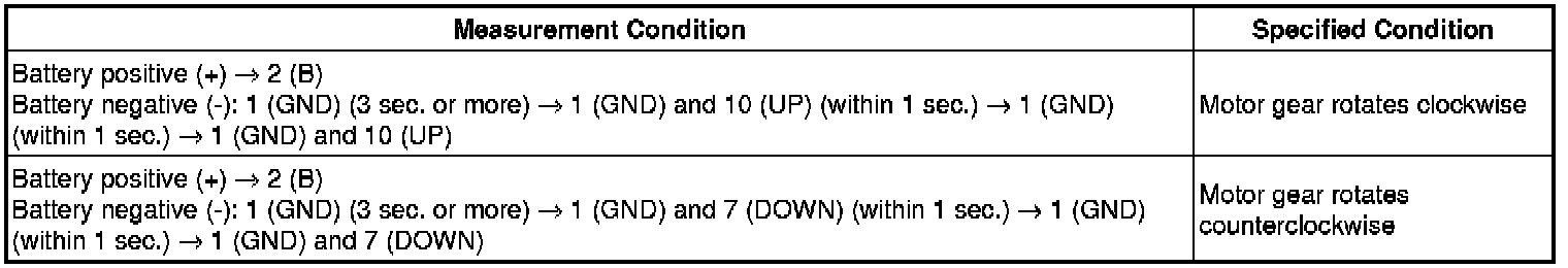 (c) Apply negative (-) battery voltage to connector terminals 1 (GND) and 7 (DOWN) / 10 (UP).